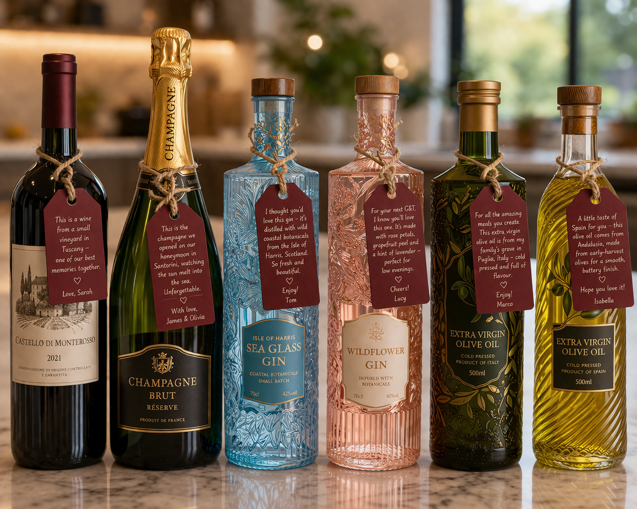 It doesn’t matter what type of bottle you choose. What matters is the memory that goes with it. Please add a label (see picture attached) with your name and a little story.